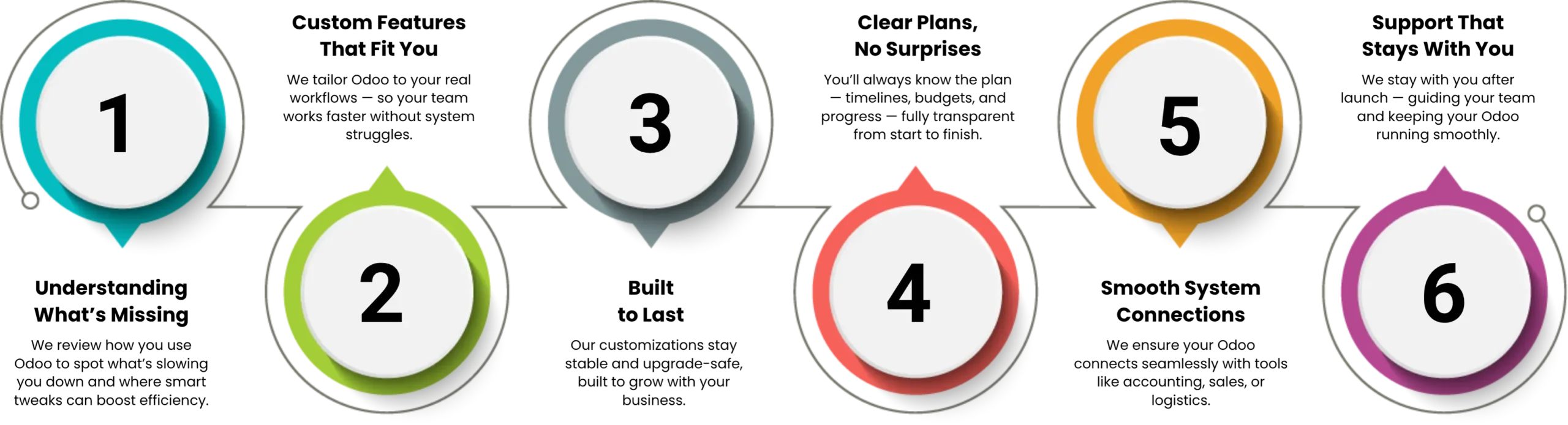 Customization isn’t a one-time fix — it’s an ongoing journey. That’s why we stick with you every step of the way, making sure your Odoo system keeps evolving as your business does.